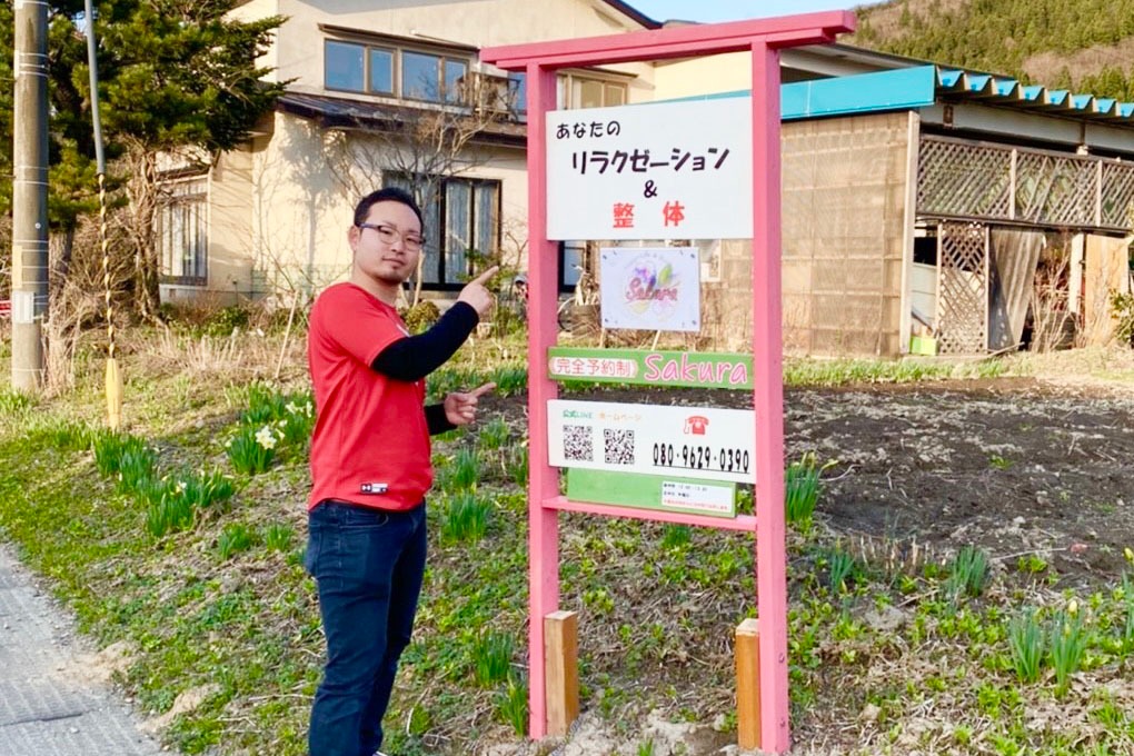 千葉県の接骨院で姿勢矯正を学び、リハビリ特化型デイサービスで脳梗塞や疾患がある方に対してのケアに従事、それと並行して訪問リラクゼーションを開業、その経験を経て妻の地元で念願の”Sakura(サクラ)"開業。